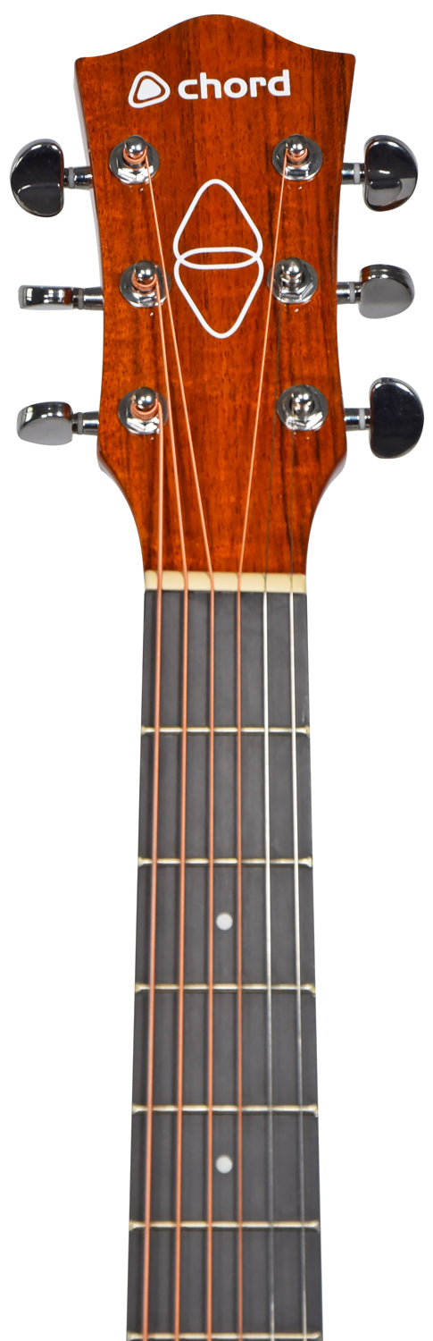 Dreadnought style electro-acoustic guitar with a venetian cutaway. Fitted with a 3-band active EQ and inbuilt tuner. The body is constructed from figured wood laminates in a high gloss finish to accentuate the attractive woodgrain. The Okoume neck holds an HPL fingerboard with 20 low profile frets. In addition to its natural good looks, the Sundown guitar is an eminently playable guitar with pro-level features for live performances, studio sessions and songwriting.