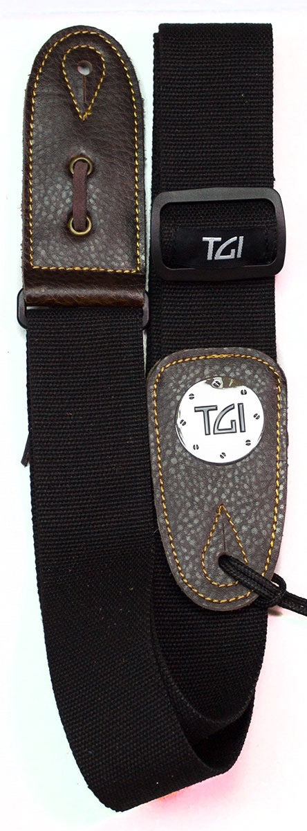 This practical strap combines woven cotton construction with leather reinforcement tabs for lasting durability. Its flexible buckle adjustment spans 66cm to 126cm, accommodating everything from compact instruments to larger basses with ease. Whether you're switching between guitars or need a strap that grows with your collection, this straightforward design delivers reliable performance without unnecessary frills.