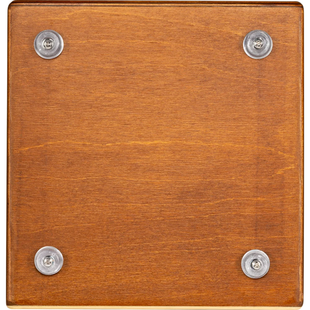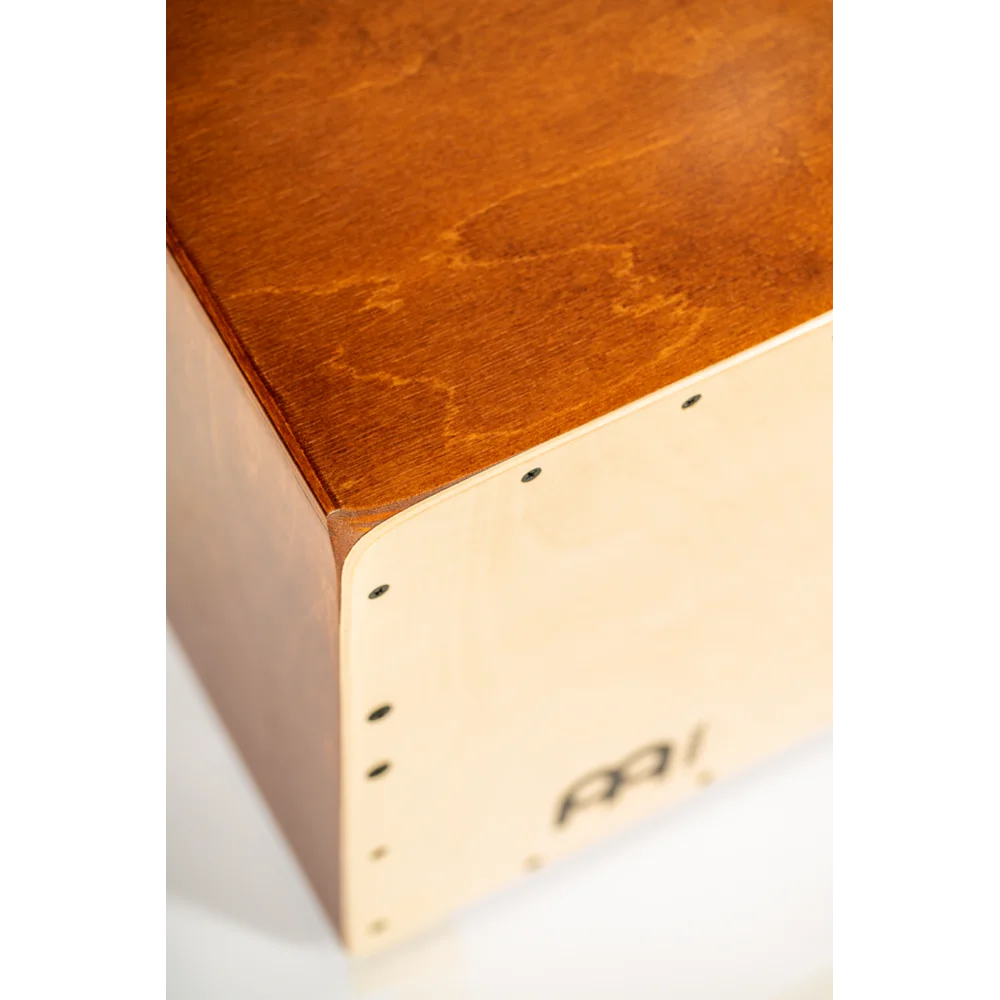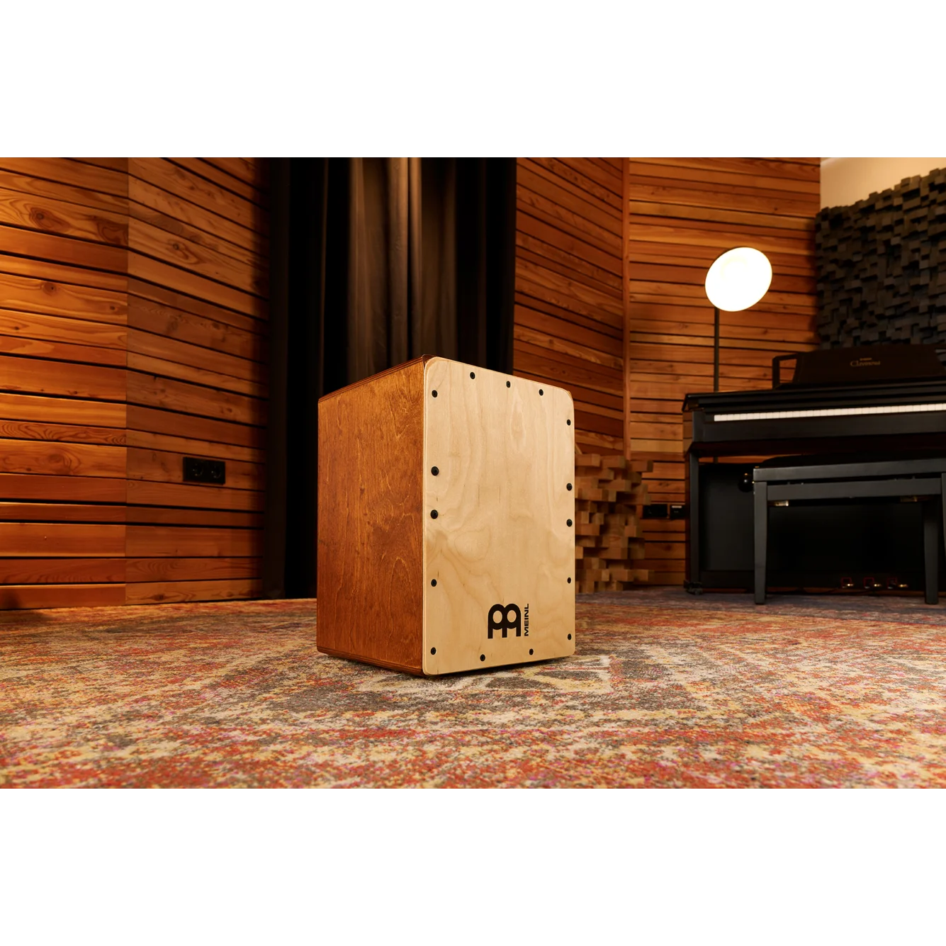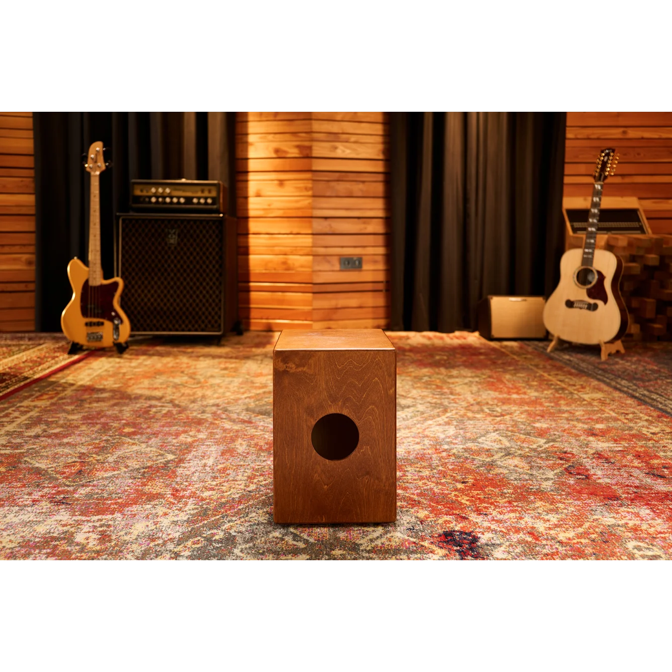 The MEINL Jam Cajon with fixed internal snares is perfect for playing on the go. Its compact design is lightweight and easy to carry to drum circles or acoustic gigs. Crafted in Europe from Baltic birch wood, the Jam Cajon has great low end punch when played near the center and dishes out snare drum "slap" sounds when striking the top corners of the playing surface. The dual internal snares are fitted to rest against the inside of the frontplate for a sensitive response. These sounds are perfect for providing the rhythmic foundation for acoustic music.