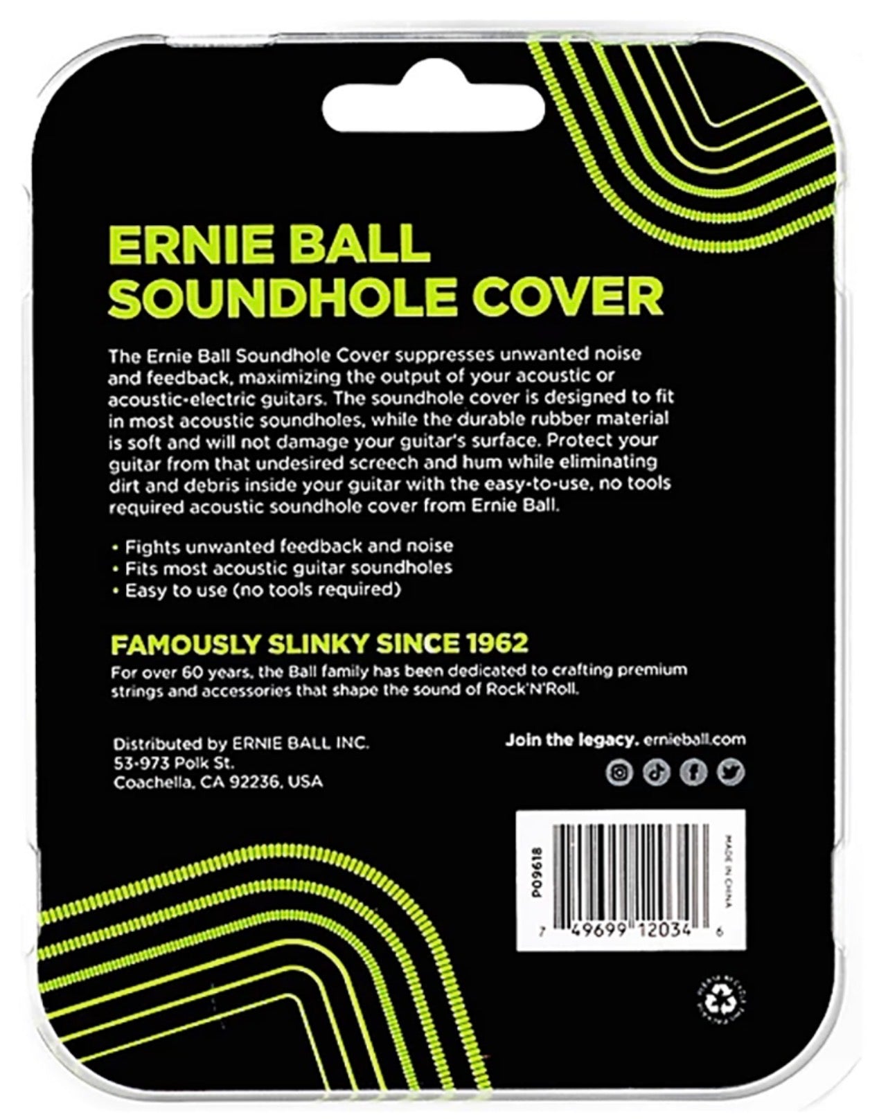 Protect your guitar from that undesired screech and hum while eliminating dirt and debris inside your guitar with the easy-to-install, no tools required acoustic soundhole cover from Ernie Ball