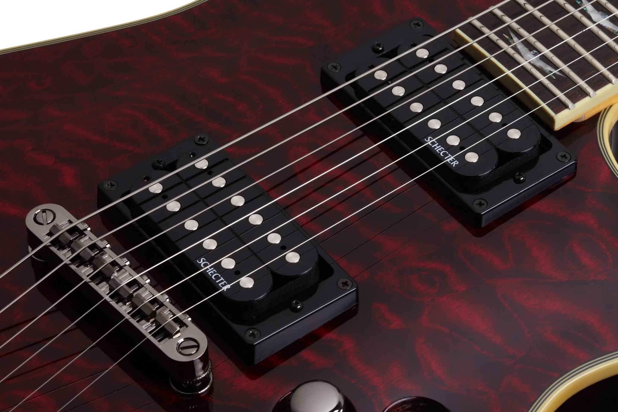 The Schecter 2004 Omen Extreme-6 blends solid value with the renowned quality of Schecter craftsmanship. Its chunky mahogany body, topped with eye-catching quilted maple and finished in rich Black Cherry, offers both durability and style. Equipped with Schecter Diamond Plus open coil humbuckers, it delivers dynamic, high-voltage rock tones perfect for intense playing. This guitar is designed to meet the demands of serious musicians seeking powerful sound and reliable performance.