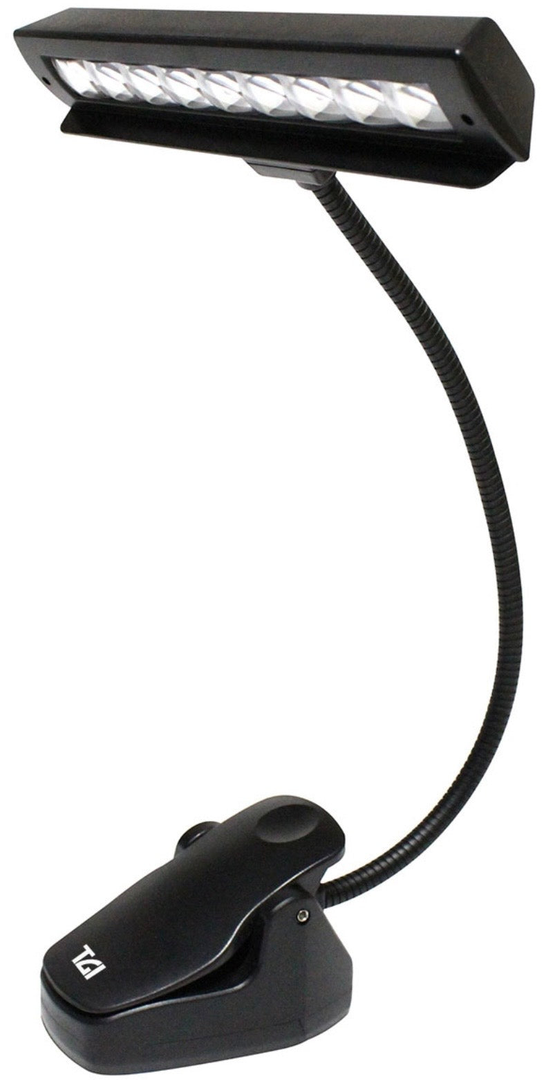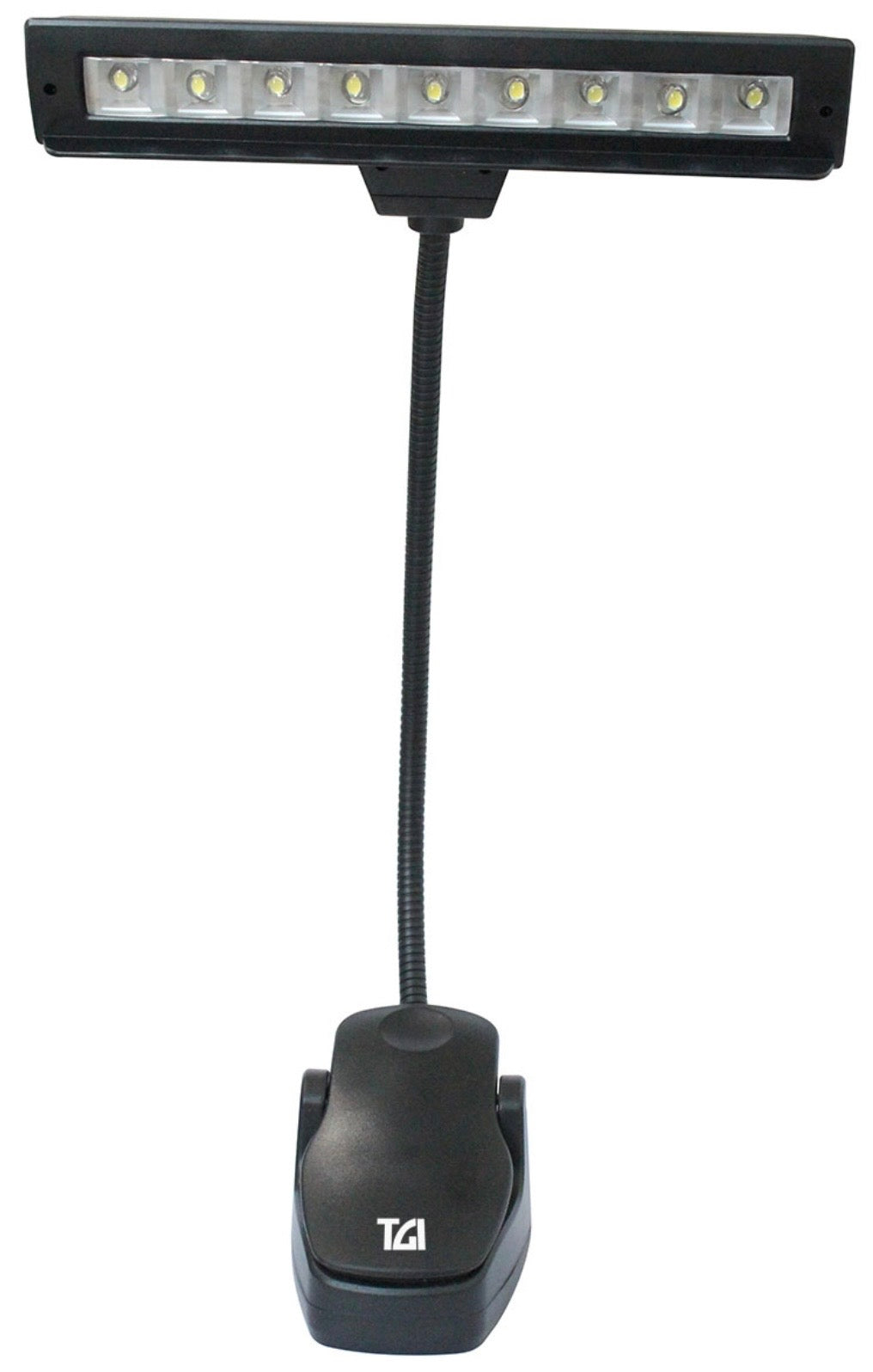 The TGI TGMSL1 music stand lamp puts bright, even light exactly where your sheet music is. Nine LED bulbs paired with two brightness settings give you complete control—dial in the perfect level for rehearsal rooms, concert halls, or intimate practice spaces. The extended 420mm arm reaches across wide music stands without obstruction, while the sturdy clamp locks firmly in place and won't budge. At just 0.2kg, it's remarkably portable yet built to last. Power it with three AA batteries for gigs and outdoor rehearsals, or connect the AC adaptor for all-day studio sessions. A lamp that works as hard as you do.